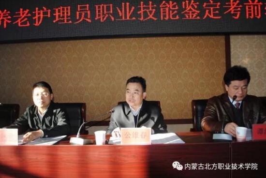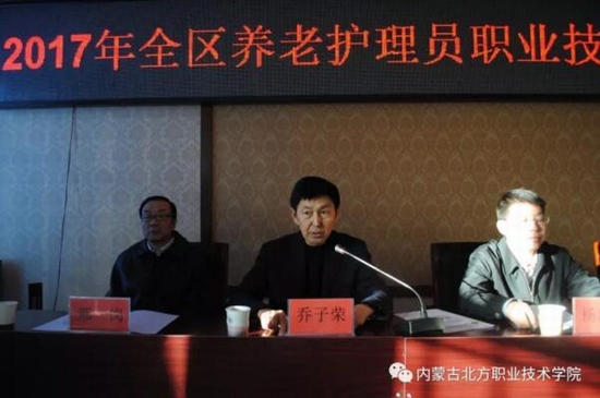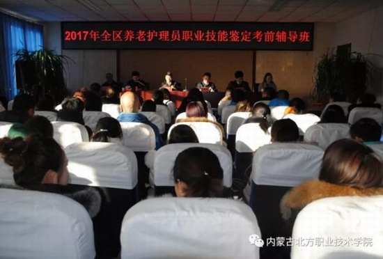 2017年12月6日上午9时, 2017年内蒙古自治区养老护理员职业技能鉴定考前辅导班开班仪式在我院学术报告厅隆重举行。来自全区各盟市社会福利院、养护院,各旗县(市区)综合福利中心、综合养护院、光荣院、敬老院、社会办养老机构、社区老年人日间照料中心、12349便民为老服务中心从事养老护理或养老服务管理的人员共200人参加本期(第五期)培训。我院作为民政部培训中心内蒙古自治区养老护理员地面培训基地,从11月6日开始至12月17日结束,分六期举办养老护理员考前辅导班,预计参加培训人数达1100余人。
