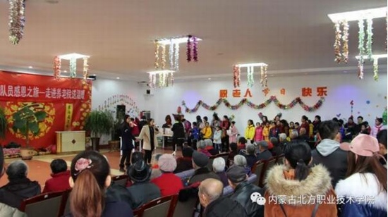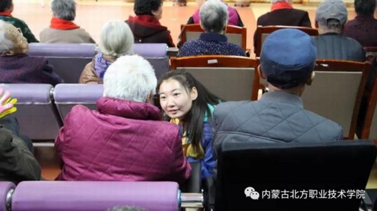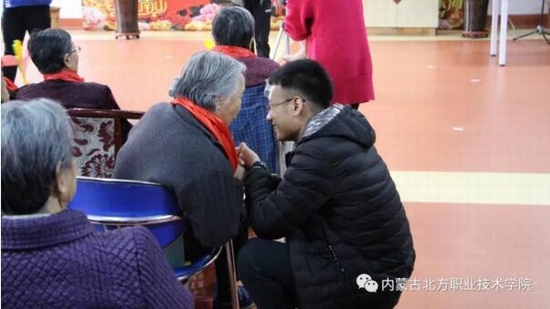 陪老人聊了一个多小时后,志愿者们为老人进行文艺表演,几位同学为老人们演唱了《女儿情》、《月亮代表我的心》等老人们喜欢听的一类歌曲,唱的分外卖力,老人们深受感动,有两位老人兴起,也唱了一曲《社会主义好》。才艺表演完毕后,同学们主动将老人送回寝室。