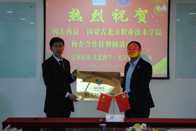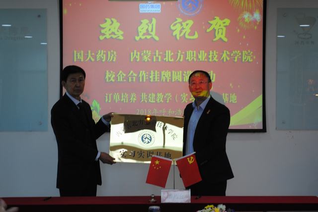 4月16日,国药控股大药房内蒙古有限公司(简称国药公司)与我院签定校企合作协议暨挂牌仪式在国药公司举行。我院院长乔子荣,党委副书记周雪峰,副院长刘义及各处室相关领导与国药公司总经理仲向军,人力资源部总监范雪莲等相关领导参加了会议。