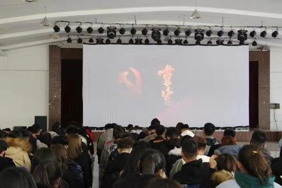 为深入贯彻落实习近平新时代中国特色社会主义思想和党的十九大精神,全面贯彻落实“不忘初心、牢记使命”主题教育,增强大学生知史爱党、知史爱国意识,学院于11月22日下午组织副处级以上领导干部、教职工代表、学生代表,学生入党积极分子共400余人观看了党史纪录片《重生》。