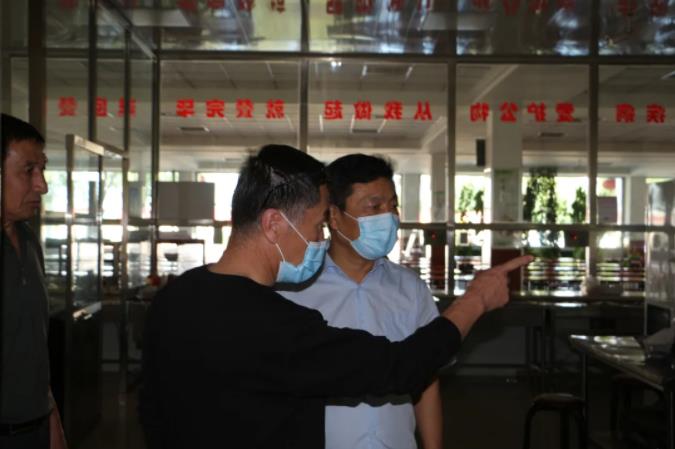 接着检查食堂食品是否在合格、卫生是否达标、消防设施是否到位,张宏俊书记强调:确保学生饮食安全、放心、有质量。