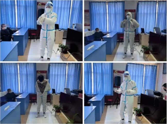 随后,邀请白玉成老师上台进行实操展示,详细讲解了穿、脱防护服的用物准备、穿脱步骤、防护及消毒处理等具体细节,并严格按照标准,逐一示范了七步洗手法、戴摘防护帽子、口罩、穿脱防护服、戴摘防护面屏、手套、鞋套、消毒处理等分解步骤。