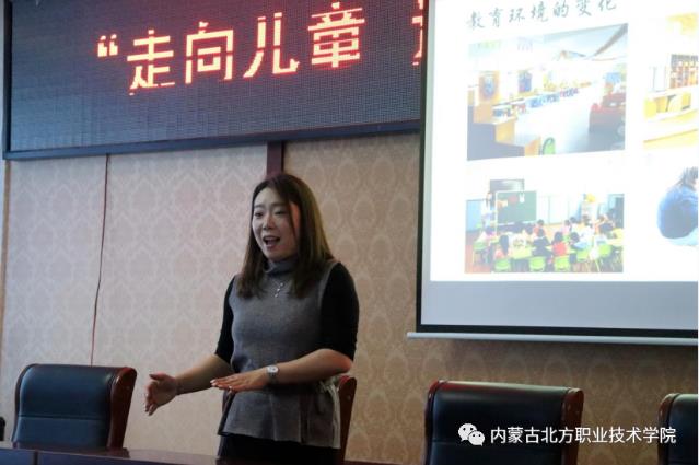 讲座伊始,陈静老师以一首欢快的音乐开场,与学生互动跳舞,切入今天讲座的主题“走向儿童·迎接未来”。陈静老师从学前教育专业的就业形势分析,学前教育现在的改革状况以及还在不断壮大的发展背景下,给同学们重点强调了专业培养目标,明确同学们未来的职业发展规划。