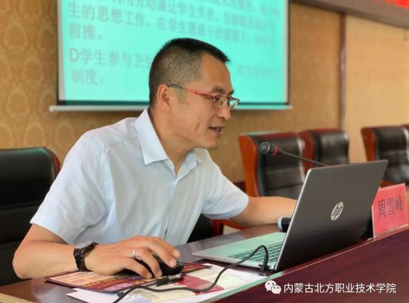 接下来,周院长首先对中华民族传统教育理念进行讲解。他讲到做好学校工作的最大前提是教师的言传身教,以身作则,同时拥有教育的责任心。作为领导不单纯听汇报,要明察秋毫,基层眼见不能少。要让我们的学生学有所长,培养有独立思维的高质量人才。接下来学院的重点工作包括围绕招生常态化,提升学生数量;在学生的服务与管理上与学生交朋友;教学的服务与管理方面注重师资力量;后勤的服务与管理要注重饭菜质量,引进各省家乡菜;保卫的服务与管理要让学生生活的安全惬意;领导为职工的服务与管理中应多发现职工的能力,培养内北职自己的优秀职工队伍。
