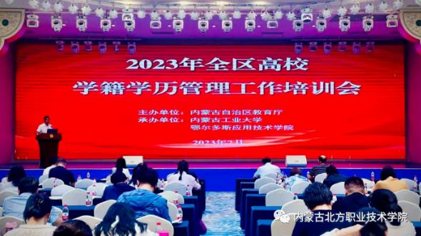 为进一步加强全区高校学生学籍学历管理工作,不断提升学籍学历管理人员的理论水平和业务能力,7月6日至7日,自治区教育厅举办全区高校学籍学历管理工作培训会议在鄂尔多斯市召开。我院教务处处长王君代表学院作《加强高职院校学籍学历管理工作的探索与实践》发言。