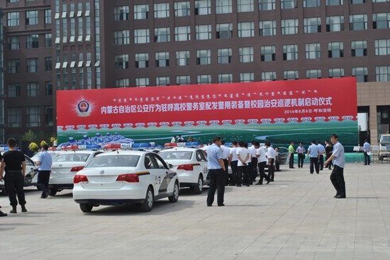自治区公安厅筹资400余万元为呼和浩特市16所公办院校、2所独立学院、7所民办学校警务室配发了警用巡逻车,以及防爆头盔、防爆盾牌等警用装备器材。