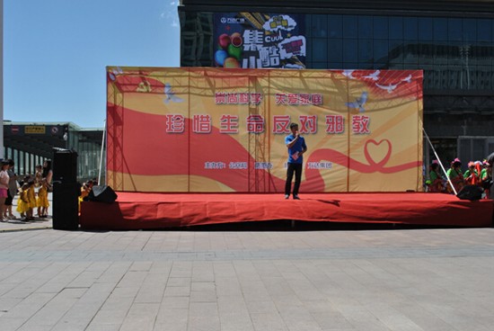 7月3日,由赛罕区公安局防范办主办,万达集团协办的“崇尚科学,关爱家庭,珍惜生命”反邪教活动在呼和浩特市万达广场举行。我院保卫处及百名学生受邀参加此次活动。