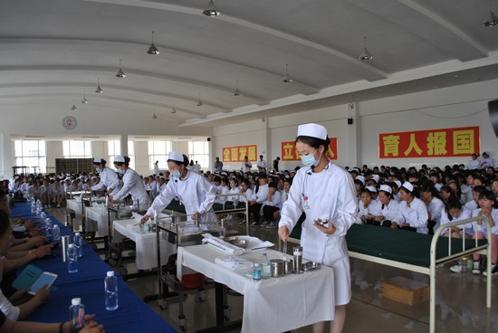 在随后的护理技能展示大会上,我院优秀毕业生代表进行了无菌操作、铺麻醉床、心肺复苏、密闭式静脉输液4项护理技术操作。她们以饱满的精神,娴熟的操作,充分展现了作为白衣天使的风貌,从此她们将以南丁格尔为榜样,履行救死扶伤的人道主义天职。