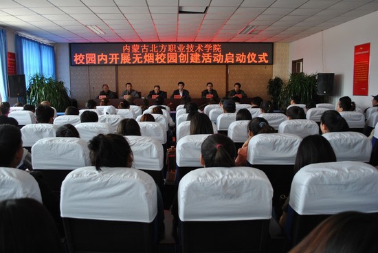 2015年4月27日,校园内开展无烟校园创建活动启动仪式于我院报告厅隆重举行。参会领导有院长乔子荣、党委常务副书记巴雅尔、执行院长徐永和、党委副书记杨茂忠、副院长刘义、副院长温国柱、副院长王景沛,会议由党委常务副书记巴雅尔主持。