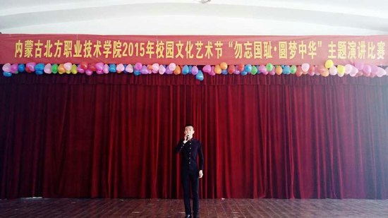 为了纪念中国人民抗日战争暨世界反法西斯战争胜利70周年,弘扬爱国主义精神,我院于9月10日至9月25日在学院大礼堂举行了“用心添文明之亮色,用行铸礼仪惊魂”2015年校园文化艺术节主题演讲比赛。参赛选手以饱满的精神和富有号召力的内容,结合自己的学习、生活,为观众完美的诠释了“勿忘国耻,圆梦中华”这一主题。