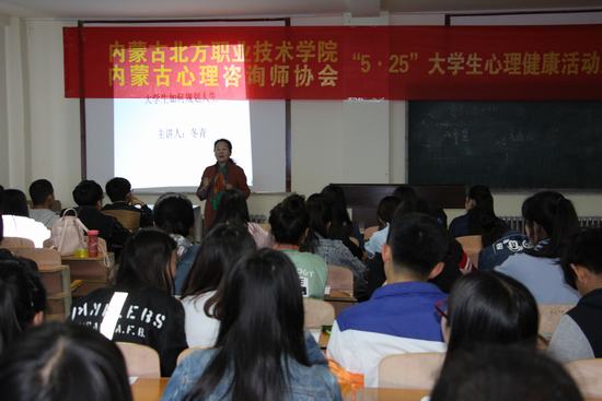 5月12日,我院在多媒体教室举办5.25大学生心理活动讲座,本次讲座特别邀请了内蒙古心理协会心理咨询师冬青老师主讲,15级护理学院全体学生参加。