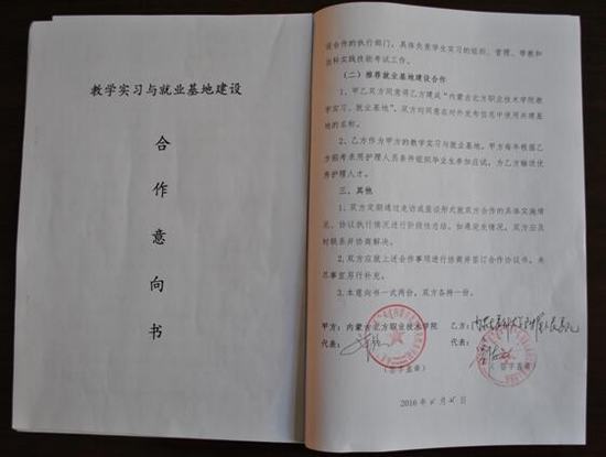 合作意向书就社会需求与课程设置、实习大纲编制与实施、实习生带教与实践技能考核、聘请专家兼职授课、推荐毕业生就业等方面开展合作交流。合作的方式主要有实习基地建设合作、推荐就业基地建设合作两项。