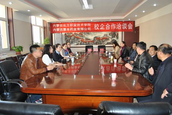 为进一步推动我院就业工作,拓展就业市场,3月30日,我院与内蒙古惠丰药业有限公司在我院会议室举办校企合作洽谈会。惠丰药业人力资源部部长赵海珍一行与我院副院长刘义等领导进行了深入交流,签订了校企合作协议。