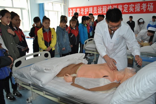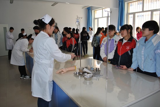 我院领导热情接待了来访的客人,于学术报告厅召开讲座,介绍了我院的发展规模、师资教学、实验实训、就业实习等突出优势。并带领达旗十中的同学们参观了我院的教学楼、实训中心、校史馆等地。在护理专业实训室,我院护理学院学生特别为参观学生当场演示了静脉输液操作和心肺复苏操作等技能。