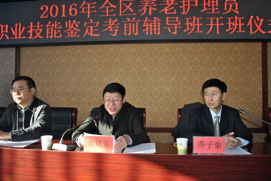 全区养老护理员职业技能鉴定培训班于11月23日在我院开班,参加开班仪式的有自治区民政厅索耀乐副厅长、自治区财政厅综合处处长陈志广、自治区民政厅社会福利处邢岗处长,院长乔子荣教授、执行董事许志勇教授。