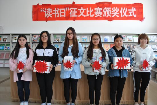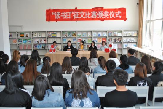 4月27日,世界读书日“腹有诗书气自华,最是书香能致远”征文比赛颁奖仪式在学院图书馆举行,书馆馆长李舒平出席并亲自为获奖同学颁发奖品。